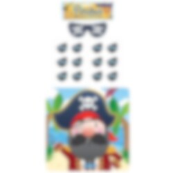 Laske ankkurit ja valmistaudu jännittävään haasteeseen tämän merirosvoteemaisen partypelin avulla! Tämä peli on täydellinen 2-12 osallistujalle ja se on hauska aktiviteetti, jossa pitää laittaa merirosvon silmälappu oikeaan paikkaan silmät sidottuna.