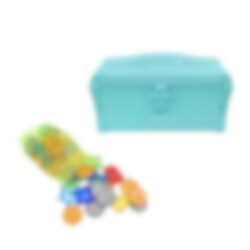 Aarrearkku jännittävillä aarteilla sukeltamista varten. Heitä aarteet veteen, uikaa ja noukkikaa ne ylös. Leiki aarteenmetsästäjää tai merirosvoa sukeltaessasi kolikoiden, ankkurin ja muiden aarteiden perään.