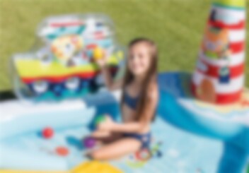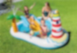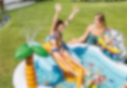 Upea leikkiallas, josta tulee helposti kuuman kesäpäivän kohokohta. Täällä sinä ja ystäväsi voitte liukua, kalastaa tai leikkiä. Voit myös liittää palmupuuhun vesiletkun, niin se suihkuttaa vettä.