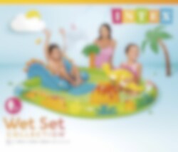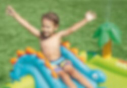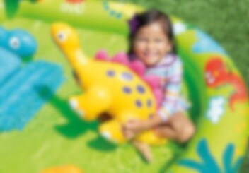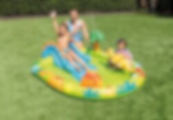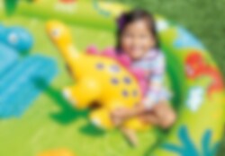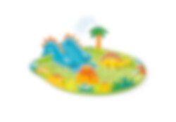 Intexin leikkiallas hauskalla dinosaurusteemalla on kesän paras lelu. Täällä sinä ja ystäväsi voitte liukua pitkin liukumäkeä palmun suihkuttaessa vettä. Sisäänrakennettu vesisumutin liitetään vesiletkuun. Sopii yli 2-vuotiaille aikuisen valvonnassa.