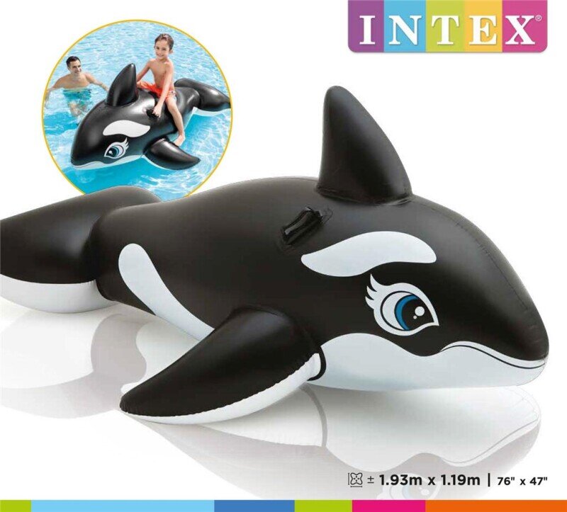 Intexin ride on -miekkavalasvesilelussa on kaksi ilmakammiota ja 2 kahvaa, joista voi pitää kiinni. Yli 3-vuotiaille aikuisen valvonnassa.