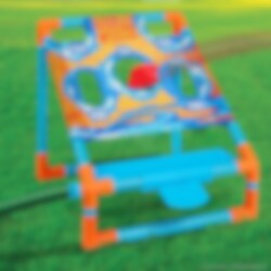 Klassinen hernepussinheittopeli twistillä. Heitä pussit maaliin kerätäksesi mahdollisimman monta pistettä. Jos epäonnistut, rangaistusalueella oleva vesisumutin aktivoituu. Hauska peli kuumana kesäpäivänä.