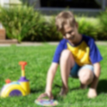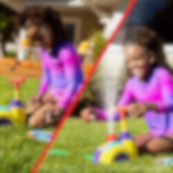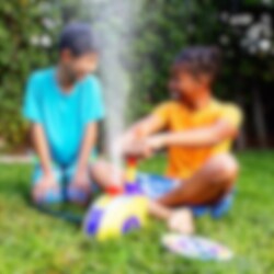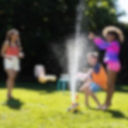 Pyöritä pyörää ja ratkaise kohtalosi. Nuolen osoittama numero kertoo kuinka monta kertaa painat pumppua. Et voi koskaan tietää, milloin saatte vesisuihkun. Jokaisella pumpauskerralla paine kasvaa – tuloksena on lopulta vesisuihku. Pumppu on liitettävä suoraan vesiletkuun. Yli 6-vuotiaille