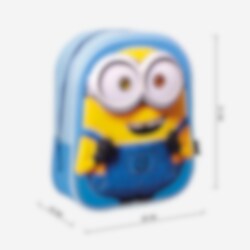 Tämä 3D Minions -reppu on täydellinen kaikille sarjan pienille faneille. Reppu on keltasininen ja sen etupuolella on 3D-Dave suosituista Minions- ja Itse Ilkimys -elokuvista. Siinä on suuri päälokero ja säädettävät olkahihnat sekä kahva päällä. Repun mitat ovat 25 x 31 x 10 cm.