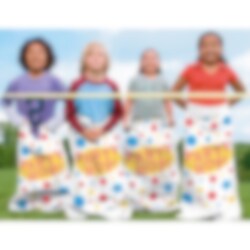 Pakkaus sisältää 6 kpl värikkäitä perunapusseja, joita sinä ja ystäväsi voitte käyttää ulkojuhlien säkkihyppykilpailuun. Kilpaile ja katso, kuka teistä tulee ensimmäisenä maaliin säkissä hyppimällä.