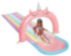 Hauska ja söpö yksisarvisteeman vesiliukurata, joka sopii täydellisesti kesän kuumimpiin päiviin. Rata on 3 metriä pitkä ja sen kaareen on rakennettu vesisuihku. Yli 3-vuotiaille aikuisen valvonnassa.