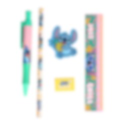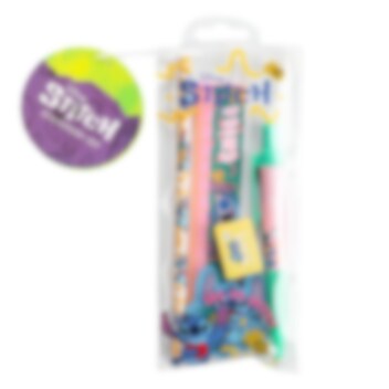 Anna koulun aloitukselle hyvä tunnelma tällä Lilo & Stitch -koulusetillä! Tämä setti sisältää kaiken, mitä tarvitaan menestyksekkääseen koulupäivään: lyijykynä, mustekynä, viivoitin, terotin ja pyyhekumi, kaikki värikkäillä Lilo & Stitch -kuvilla.