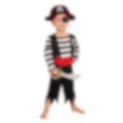 Upea merirosvo-naamiaisasu, jota lapset varmasti arvostavat merirosvojuhlissa. Haalari, jossa on hienoja merirosvo-yksityiskohtia. Väreinä punainen, musta ja valkoinen. Mukana on myös merirosvohattu. Saatavana kahdessa eri koossa 3-4-vuotiaille ja 4-6-vuotiaille lapsille. Puku on valmistettu 100 % polyesteristä, esipesty ja ilmakuivattu.