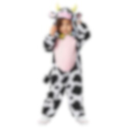 - Sisältää: Onepiece-asu mustavalkoisella kuviolla, pinkki rinta, vetoketju ja häntä. Hupussa on söpö lehmän naama, korvat ja sarvet.