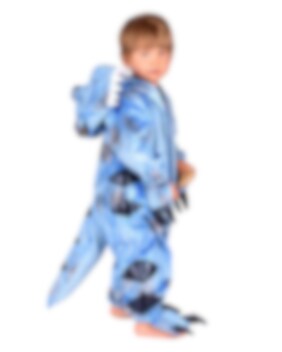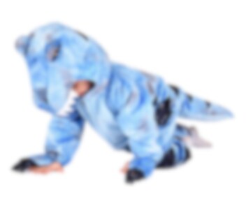 Dinosaurus T-Rex Jumpsuit -naamiaisasu sisältää vaaleansinisen haalarin, jossa on mustat yksityiskohdat ja jossa on T-Rexiä esittävä kuva. Puku on valmistettu 100 % polyesteristä, ja sitä on saatavilla kahdessa koossa, jotka sopivat 3-5-vuotiaille lapsille. Tulee pestä käsin ja kuivata narulla.