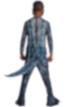 Jurassic World Blue naamiaisasu sisältää hienon jumpsuitin ja siihen kuuluvan hännän, kovan kasvonaamion, joka on valmistettu muovista, sekä kengänpäälliset. Täytä häntä saadaksesi aikaan upean 3D edektin. Naamiaisasu on valmistettu 100% polyesteristä ja se löytyy kolmessa koossa, jotka sopivat 3-10-vuotiaille. Puku on käsinpestävä ja narulla kuivattava. Tuote on virallinen ja lisenssoitu.