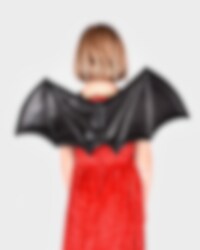 Mustat lepakonsiivet –täydellinen asuste Halloween-naamiaisasuusi. Siivet on valmistettu 100 % polyesterista. Siipien yläreunassa on metallirunko muodon ja vakauden varmistamiseksi. Joustavat olkahihnat ja tyylikäs musta metallinen viimeistely. Sopii noin 2-14-vuotiaille lapsille.