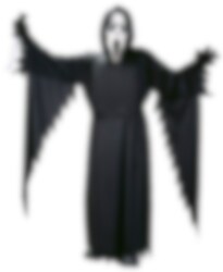 - Sisältää: Hupullinen takki ja hihat, musta vyö ja Ghost Face naamari.