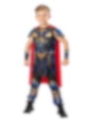 Tunne itsesi Marvelin mahtavaksi ukkosenjumalaksi tämän lasten Thor-naamiaisasu Deluxe avulla. Asu sisältää housut, joissa on säärisuojat, erilliset rannesuojat vaahtomuovilla ja irrotettavan, pitkän punaisen kangasviitan. Täydellinen pienille supersankareille. Kengät eivät sisälly hintaan.