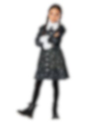 Tunne itsesi Wednesday Addamsiksi tämän lasten Wednesday-naamiaisasun avulla. Hän on ikoninen hahmo Addams Familystä ja suositusta Netflix-sarjasta. Mekossa on upeat painatukset ja se on täydellinen pienille salaperäisille sieluille, jotka ovat valmiina jännittävään Halloweeniin!