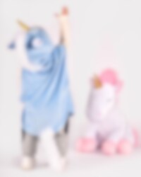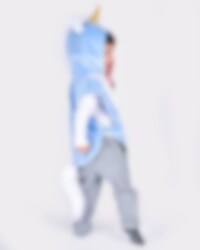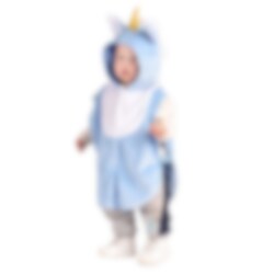 Naamiaisasuun kuuluu sininen viitta sisältäen superhienon yksisarvisen, jossa on kimaltava kultasarvi ja hienoja yksityiskohtia. Viitta on valmistettu 100 % polyesteristä, se on noin 45 cm pitkä ja sopii 1-4-vuotiaille lapsille, joiden pituus on 86-110 cm.