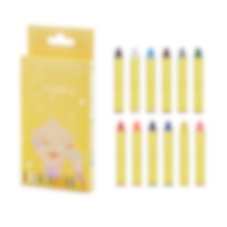 Pakkaus sisältää seuraavat värit: musta, valkoinen, punainen, keltainen, tummanvihreä, tummansininen, vaaleansininen, oranssi, vaaleanpunainen, violetti, ruskea ja harmaa. Värikynät ovat 5,5 cm pitkiä ja sisältävät nestemäistä parafiinia ja vahaa.