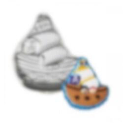 Merirosvosynttäreille ei kelpaakaan mikä tahansa kakku. Aito merirosvokakku, jossa on laiva, purjeet ja kaikki tarvittava! Voit myös jäädyttää vuoassa jäätelöä. Koristele laivakakku hienoksi esimerkiksi marsipaanilla tai eri väreillä. Merirosvolaiva-kakkuvuoka on valmistettu alumiinista ja kestää vain käsinpesun. Koko: 33 x 28 x 5 cm.