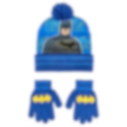 Suojaudu kylmältä tällä siistillä Batman-setillä! Pipossa on tupsu ja sitä koristaa Batman-kuvio. Sinisissä hanskoissa on hänen ikoninen lepakko-logonsa. Täydellinen pienille supersankareille.