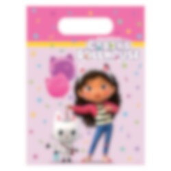 6 kpl juhlapusseja muovista. Niissä on suloisia Gabby's Dollhouse -kuvioita, kuten Gabby, Kitty Fairy ja värikkäitä ilmapalloja. Täydellisiä täytettäväksi karkeilla, pienillä leluilla tai hauskilla yllätyksillä, jotka lapset saavat ottaa mukaansa kotiin juhlien jälkeen.