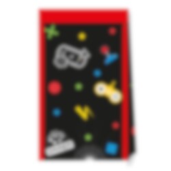 4 kpl Juhlapussit paperista mustalla peliaiheisella kuviolla, joka on täynnä värikkäitä pelisymboleja kuten peliohjaimia, tähtiä ja salamoita, sekä punaisella reunalla ylhäällä. Täydellisiä täytettäväksi karkeilla, pienillä leluilla tai yllätyksillä, jotka lapset voivat ottaa mukaansa kotiin juhlien jälkeen.