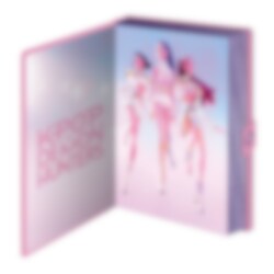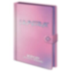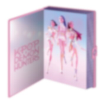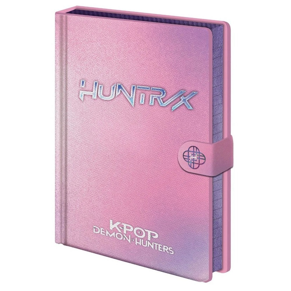 Ylellinen muistikirja K-Pop Demon Hunters -sarjasta. Kirjassa on upea helmiäishohtoinen kansi vaaleanpunaisen och violetin sävyissä. Kantta koristaa holografinen "HuntrX"-teksti, ja kirja suljetaan sivussa olevalla kätevällä painonappikiinnityksellä.